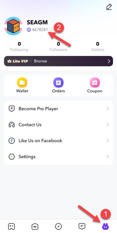 2. Tap the Account icon in the down right corner,the Lita User ID will be displayed.