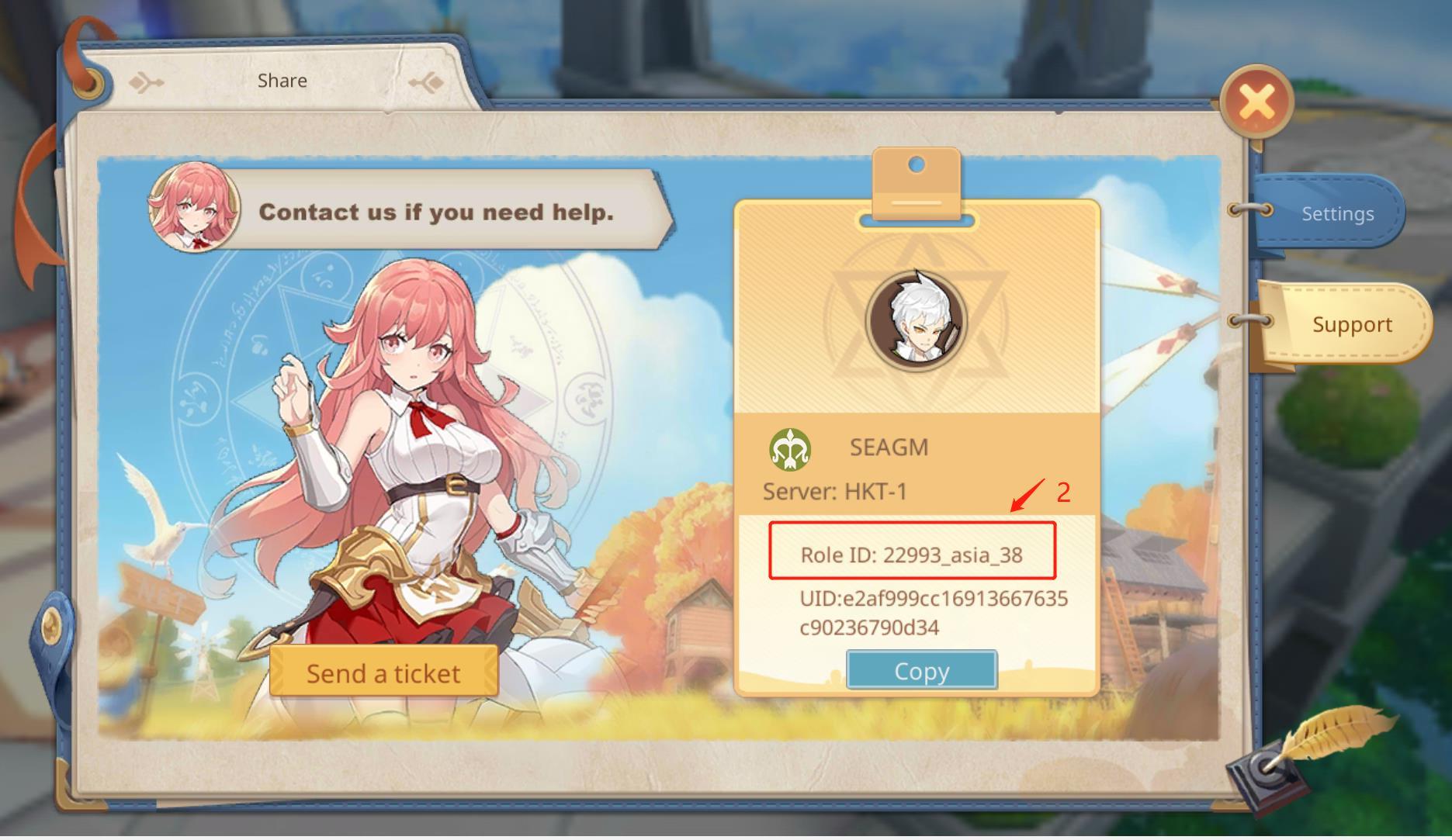 - 您的 Guardians Of Cloudia 角色 ID 和伺服器將顯示。